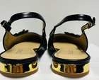 TALBOTS Edison Slingback Bow Flats Black & White Dot Print Size 9.5 M Gold Heel Pre-Owned, Excellent Condition. See pictures for details. Some wear shown on bottom of shoes, otherwise great conditon! Item: 0003