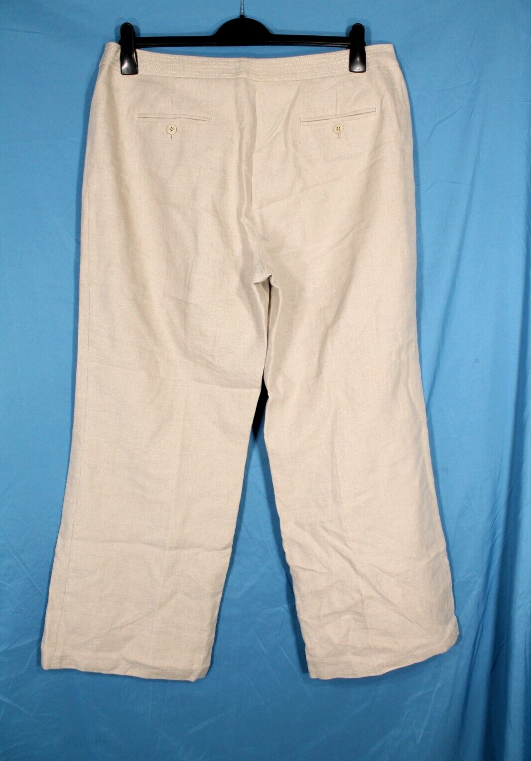 MEASUREMENTS: Waist: 36", Rise: 11.5", Hips: 44, Inseam: 30". 100% Linen. Lininig-100% Polyester. In very gently used condition. THANK YOU EBAY!!! We are so thankful for our customers! We have thousands of listings, and therefore receive hundreds of messages, every single day. So, if you are asking about a price drop, or a shipping price drop, or asking for extra measurements, or to add additional photos, please allow me to answer you here, No thanks. If your question is not one of those questions, we will be happy to answer you individually. YES...WE DO COMBINE DOMESTIC SHIPPING. Extra jewelry items ship for $2 each (except for large jewelry lots). We will refund the difference as we are mailing out.....we hope you enjoy shopping with us! We encourage you to read the description and check all photos.