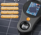 HIGH DEFINITION: The handheld magnifier has a 2 million pixel ultra-macro lens, 500X magnification and a 2-inch IPS HD screen that provides realistic color reproduction and clear viewing. Its 2 million true pixels will meet your daily observation needs and provide unparalleled clarity for detailed examination. Ergonomic and Comfortable: Designed with ergonomics in mind, the HD magnifying glass features a comfortable grip that reduces hand fatigue during prolonged use. Its user-friendly design ensures a comfortable observing experience, even during extended periods of holding. Widely Used, Suitable for Near Desktop Work: Microscope magnifying glasses with light for close work with its wide-ranging versatility, is ideal for a multitude of tasks, making it the perfect companion for close-range desktop work. Whether reading newspapers, documents, maps, coins, stamps, electronic parts, jewelry, photos, needlework, plants, prints, or reading the fine print on coupons, prescription drugs, medical bottles, its adaptability ensures optimal performance in a variety of applications. Digital microscope, compact and portable: Handheld digital magnifier is smaller and lighter, can be easily loaded into the pocket, more convenient to go out with; built-in storage space, optional with 32g memory card, support for high-definition photo and video, convenient to record at any time. Specification Product Name Handheld digital microscope Product color: white/black Display: 2 inch IPS screen Pixel: 2 megapixel Magnification: 500x Resolution: 1920*1080P Focus range: Fixed focus (0mm) Light source: 8 LEDs Image format: JPG Video format: AVI Power supply: 600mAh Working time: about 1,5h Charging time: 1,5h or so Port: Type-C Support system: Windows XP/Vista/Win7/8/10/11,Mac11.0 or above Weight: 120g Size: 13.1*8.1*3.7CM Packing List Digital microscope x 1 Instruction manual x 1 Type C cable x 1 tamACX Model: Digital Microscope Retail Price: $79 Condition: New with Box SKU: 3256807149837495
