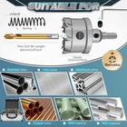 Premium TCT Carbide Hole Saw Set - Versatile, Durable, and Precision-Engineered Upgrade your toolkit with this high-quality TCT Carbide Hole Saw Set, designed for superior performance and longevity. Perfect for professionals and DIY enthusiasts alike, this set ensures precision cuts in various materials with ease. Package Includes: 10 Hole Saw Sizes : 19mm (3/4"), 22mm (7/8"), 25.5mm (1"), 29mm (1-1/8"), 32mm (1-1/4"), 35mm (1-3/8"), 45mm (1-3/4"), 51mm (2"), 54mm (2-1/8"), 60mm (2-3/8") 2 Extra Pilot Drill Bits 2 L-Wrench 1 Exquisite Aluminum Box for easy storage and transport Key Features: Superior Quality : Made of high-quality TCT Carbide (Tungsten Carbide Tipped Cutters), this set offers high hardness, rust prevention, and exceptional durability. Versatile Applications : Ideal for cutting through hard materials like stainless steel, mild steel, iron, aluminum, copper, as well as FRP, wood, and plastic. Easy to Use : Compatible with handheld electric drills, mobile ribbon-type magnetism drilling machines, and stand motor-driven drilling machines. Adding coolant during high-speed drilling prevents burning or breaking, extending the product's lifespan. Portable Design : The metal hole saw kit comes with a compact and sturdy aluminum box for convenient use and storage. Product Description: Newly Upgraded Alloy Blade : Featuring a three-blade design for serrations, ensuring versatile and durable precision cuts in various materials. Material : TCT carbide Handle Diameter : 3/8 Inch Cutting Length : 1 Inch Cutting Diameter : 19mm (3/4"), 22mm (7/8"), 25mm (1"), 29mm (1-1/8"), 32mm (1-1/4"), 35mm (1-3/8"), 45mm (1-3/4"), 51mm (2"), 54mm (2-1/8"), 60mm (2-3/8") Safety Features: Multi Safety Protection : Includes overload protection, short-circuit protection, over-current protection, over-voltage protection, and overheating protection, making it a safe and reliable choice. Portable and Convenient : Compact size, large capacity, and easy to store, making it perfect for home, office, and travel.