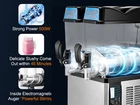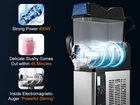 Introduction Keep Material Safe & Hygiene : TECSPACE commercial slushy machine is made of superior food-grade 304 stainless steel, due to excellent corrosion resistance, the surface finish and durability are maintained even in humid or high-temperature environments, ensuring the purity and quality of liquid. The bowl of the slushy machine adopts smooth food-grade PC material(polycarbonate), beverage residues are not easy to adhere to the surface and are easy to clean. Easy to Operate : The commericial slushy machine is equipped with LED light, even at night, you can clearly see the viscocity of the slushy. The spiral in each bowl can also be independently controlled. The operation panel is simple, just press the slushy mode key or the cool drink mode key to get the drink you want. Tip: Minimum sugar content must not be less than 13% . No Hassle about Leakage : The spiral of the slushie machine made of POM material have high hardness and strength, it performs well even under heavy impacts. The front and rear ends of the spiralare equipped with seals to prevent liquid leakage. Built-in stainless steel springs in the nozzle not only provide durability but also stable clamping force to ensure that it won't loosen over a long period of time. Quick Refrigeration & Blend : The double-sided refrigeration system has excellent functions of rapid refrigeration and highly efficient slush production, which is specially designed for manufacturing summer frozen drinks business. The powerful and long-lasting compressor with copper wires helps refrigerate and form swiftly, is more power-efficient, lower decibels and noise. Fine and even smoothie mixed gives you a tender and smooth taste in summer. After-sale Commitment : TECSPACE commercial margarita machine comes with an 18-month warranty period. Please remove the crate and check every part of the machine after receiving the parcel. ( keep the crate and other packing materials for possible future use). If there is any problem in receiving the machine, e-mail us immediately, and we will solve it for you within 8 hours .