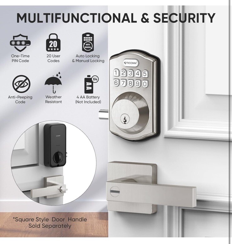 TEEHO TE001 Keypad Digital Deadbolt Keyless Entry Door Lock Satin Nickel Introducing the TEEHO TE001 Keypad Digital Deadbolt Keyless Entry Door Lock in Satin Nickel. This high-quality lock is perfect for residential use and securing your front entrance door. The lock features a universal mounting design and is made from durable nickel material with a matte finish.With its black color and sleek design, this deadbolt lock is suitable for any home décor. The keypad digital entry allows for easy access using a code, while the keyless entry convenience ensures that you can enter your home without the need for a key. The TEEHO TE001 model is a reliable and efficient choice for anyone looking to secure their home. Introducing the TEEHO TE001 Keypad Digital Deadbolt Keyless Entry Door Lock in Satin Nickel. This high-quality lock is perfect for residential use and securing your front entrance door. The lock features a universal mounting design and is made from durable nickel material with a matte finish. With its black color and sleek design, this deadbolt lock is suitable for any home décor. The keypad digital entry allows for easy access using a code, while the keyless entry convenience ensures that you can enter your home without the need for a key. The TEEHO TE001 model is a reliable and efficient choice for anyone looking to secure their home. eBay integration by