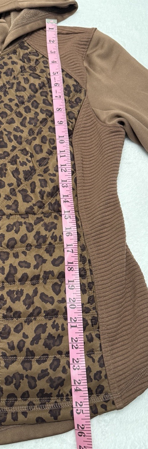TEK GEAR SZ M Leopard Zip Front Jacket athleisure leisure comfy hooded cuffins. Condition is Pre-owned - Good. Shipped with USPS Ground Advantage.