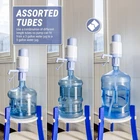 Product Description This manual drinking water pump is like no other. This model will fit onto any size bottle, screw-top or crown-top except glass bottles and Primo brand bottles. It will have no problems fitting and pumping water from 2 gallon through 6 gallon water bottles. The new fastener system can grab onto and seal any bottle is a breeze. The new fastener was designed with hygiene in mind. Previous models have always had a bunch of ridges and rough areas that are safe havens for germs. The new design has all of these parts on the inside with a nice surface on the outside. Simply adjust your tubes according to the size of the bottle and tighten the pump onto the bottle. This pump will dispense water as fast as you can pump it and it will do it very well. From the Manufacturer This manual drinking water pump is like no other. This model will fit onto any size bottle, screw-top or crown-top except glass bottles and Primo brand bottles. It will have no problems fitting and pumping water from 2 gallon through 6 gallon water bottles. The new fastener system can grab onto and seal any bottle is a breeze. The new fastener was designed with hygiene in mind. Previous models have always had a bunch of ridges and rough areas that are safe havens for germs. The new design has all of these parts on the inside with a nice surface on the outside. Simply adjust your tubes according to the size of the bottle and tighten the pump onto the bottle. This pump will dispense water as fast as you can pump it and it will do it very well. NO MORE HEAVY LIFTING - Forget about carrying large water containers for a drink. With just a few simple pumps from this manual water dispenser, treat yourself to a refreshing glass of clean and pure drinking water. HYDRATE YOURSELF - Never worry about unpleasant aftertaste! This manual water pump for your water jug is made from BPA-Free food grade plastic, which ensures your water will retain its natural taste, completely free from any rubber like flavors. STEADY WATER FLOW - Designed for 2 to 6 gallons bottles, this water gallon pump easily connects to any water bottle excluding glass bottles. It secure attachment creates a flawless seal, ensuring a steady flow of water during dispensing. EVERYTHING YOU NEED - All the accessories you need for using our water gallon jug dispenser are already included. Our water pump fits most 2 Gallon with our extra short upper tube. It also includes 2 different tubes, a Short Upper Tube, Long Upper Tube, Lower Tube and 2 Tube Joints for flexibility. Don't forget about the Pump Head and a Spout with a Lid to keep debris away, and cleaning brush. RECOMMENDED USE - This water gallon pump uses no electricity. Make the most of this water pump during picnics, backyard BBQs, at the park, camping, and beyond! You can also use this water gallon pump indoors like at home, offices, hospitals and more!