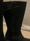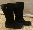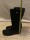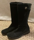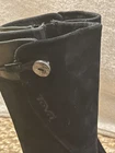 Step out in style with these TEVA Montecito 4026 black leather boots in a women's size 7. Perfect for any occasion, these mid-calf boots feature a round toe, side zipper closure, and a 1-inch platform height. The low block heel adds a touch of sophistication, while the button and zipper accents provide a unique flair. These boots are perfect for winter, fall, or spring and can be worn for travel, activewear, casual wear, or workwear. Made with lightweight and durable materials, these boots are sure to last. There is a scuff on the front right shoe ( see photos ). Thanks for looking! :)