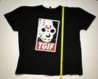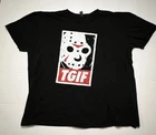 Show off your love for horror movies with this TGIF Jason Voorhees t-shirt. Featuring a graphic print of the iconic slasher character, this shirt is perfect for fans of the franchise. Made from comfortable cotton jersey fabric, it is easy to care for and preshrunk to ensure a perfect fit every time. With a crew neck and short sleeves, this regular fit t-shirt is suitable for all seasons and can be worn throughout the year. The shirt is machine washable and comes in black color. It is a great addition to any horror-themed wardrobe and perfect for casual outings or Halloween events.