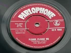 THE BEATLES ORIGINAL 1963 U.K. PRESSING OF THE 45 PLEASE PLEASE ME ASK ME WHY ON PARLOPHONE 45 R 4983 NOT FOR SALE STICKER 1ST DAY PRESSING WITH JOURNAL REVIEW STAMPER J R THE LABELS FAINT NAMES BOTH SIDES P T TAX CODE SIDE 1 THE VINYL IS A STRONG VERY GOOD PLUS , OVERALL BRIGHT AND CLEAN, NICE SHINE , FEW LIGHT MARKS , PLAYS EXCELLENT COMPLETE WITH ORIGINAL TOP POP SLEEVE IN GOOD PLUS CONDITION SOME SPLITTING ON SEAMS THE MATRIX NUMBERS AND STAMPERS ARE 7XCE 17217-1N STAMPERS M P T 3 G O 7XCE 17145-1N STAMPERS MPT J R