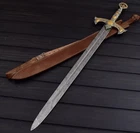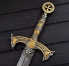 THE KNIGHTS TEMPLAR | Crusader Sword Custom Handmade Damascus Steel With Leather Blade Length: 28.50" - Blade Material: 1097 HC & 15N20 - Blade Thickness: 0.21" - Blade Hardness: 56-58 HRC - Blade Grind: DOUBLE EDGE - Blade Finish: DAMASCUS - Handle Material: ZINC CASTING - Handle Thickness: 1.00" - Overall Length: 38.75" - Weight (Oz): 59.4352 - Blade has given excellent heat treatment and rock well hardness of the blade along its edge is 50 to 54 and along the spine is 42-45. 4 mm thick blade has fantastic hand grinds on both side with top side left with a false edge. This sheath is not of universal size but it is made custom just as this custom sword. The sword come with custom made genuine top quality calf skin. Which fits on sword perfectly. The leather sheath is totally hand tooled and sewn. Tips to Care knife: 1. Never Store Your Knife For Long Time In Leather Sheath. 2. Leather Can Absorb Water, Which Will Rust The Knife. 3. Always Clean The Blade After Using With Oil Or Wax. Please write to me in case of any queries. I will be at your service. Thanks. PAYMENT: Ebay Payment DELIVERY: WITHIN 3 TO 5 DAYS AFTER RECEIVING YOUR PAYMENT COURIER: WE ARE USING DHL, USPS, first class 2-3 DAYs. FOR INTERNATIONAL CUSTOMERS: WE USE usps Priority mail INTERNATIONAL. INTERNATIONAL CUSTOMERS CAN ASK US BY E-MAIL ABOUT THE SHIPPING CHARGES TO THEIR SPECIFIC COUNTRY. REMOTE AREA CUSTOMER MUST PAY 30$ EXTRA SHIPPING AGE RESTRICTION: WE DON'T SELL KNIVES TO ANY ONE WHO IS UNDER AGE 18. GUARANTEE: IF YOU ARE NOT HAPPY WITH YOUR PURCHASE, WE OFFER YOU A PEACE OF MIND GUARANTEE IF YOU RETURN THE PRODUCT WITHIN 14 WORKING DAYS. WE WILL REFUND YOUR MONEY BACK IMMEDIATELY ON RECEIVING THE KNIFE BACK IN ORIGINAL CONDITION. DELIBERATE TAMPERING WITH THE PRODUCT OR MISUSE WILL NOT QUALIFY FOR THE REFUND. SHIPPING CHARGES ARE NON-REFUNDABLE. DISCLAIMER: WHEN YOU ARE BIDDING ON THIS KNIFE YOU ARE CONFIRMING US THAT YOUR AGE QUALIFIES FOR THIS PURCHASE AND THIS IS A LEGAL PURCHASE.HAND CUSTOM KNIVES TAKES NO RESPONSIBILITY FOR ANY ILLEGAL PURCHASE. HANDY CUSTOM KNIVES IS ALSO NOT RESPONSIBLE FOR INJURY, DEATH OR CRIMINAL ACTS DUE TO THE MISUSE OF OUR PRODUCTS