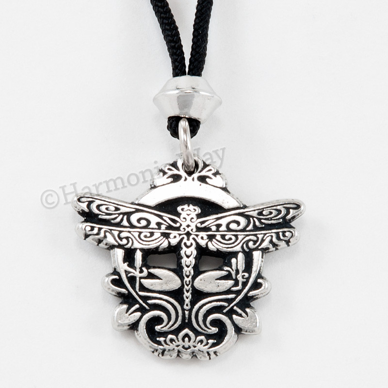 Dragonfly Pendant Necklace The power to reflect and refract light and color has attracted us to the dragonfly as a source of magic and mysticism. Through the ages, people have sought wisdom and healing energy from these colorful beings of light. Invite the Dragonfly into your heart and watch your creativity soar as the beauty of light creates magic in your life. This piece is Superbly hand-crafted in the highest quality lead-free Pewter available. A unique finishing process is used resulting in one of the most beautiful lines of jewelry you can find This Beautiful Pendant is brand new, detailed on both sides and comes with a 36" black cord with accent bead. 1 " h x 1 1/8" w approx.