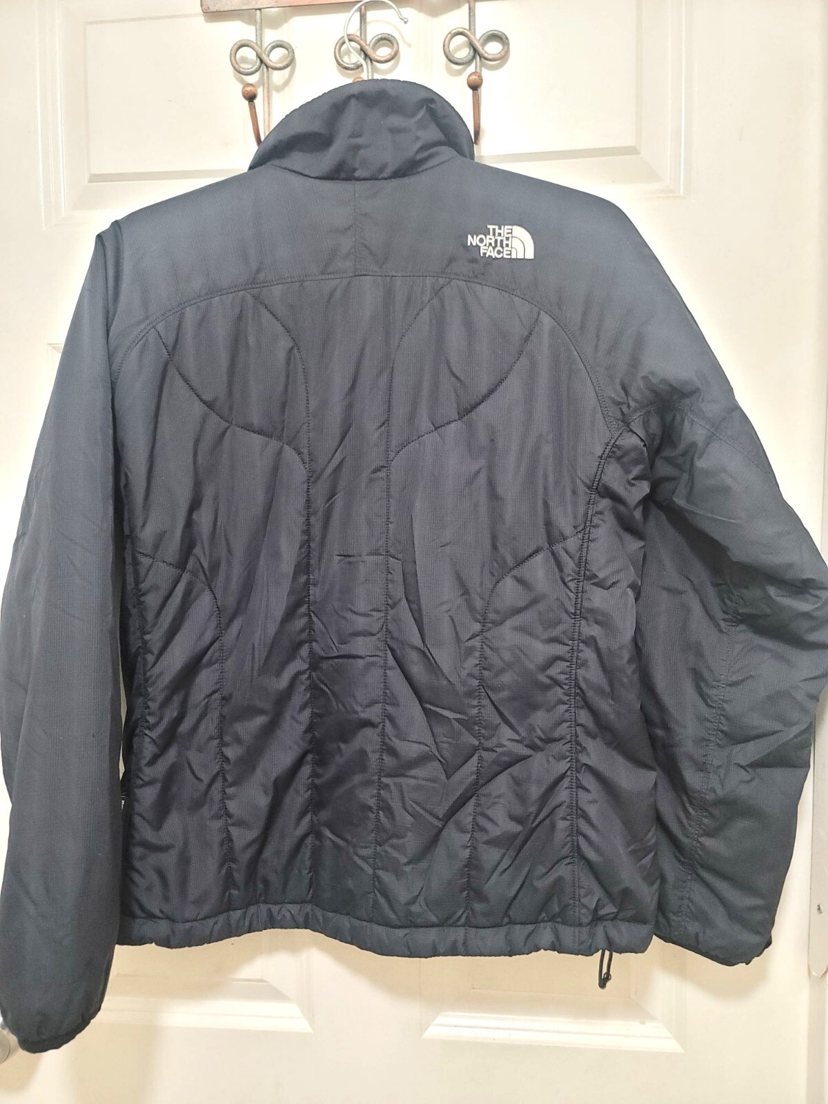 The north face redpointed primaloft black women's winter jacket. CONDITIONS pre owned, minor wear, good conditions. see photos for flaws details and measurements.