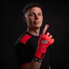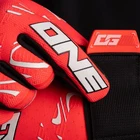FEATURES 4mm of Pro Grade Contact Latex Lightweight one-piece construction (weights just 95g!*). Strapless with attachable strap Negative Cut (inc. Thumb) for locked-in control Urgotract™ body for elite breathability & comfort NEW Extended V-palm construction Echo Form™ 2.0 internal grip system Quantum Elastic wrist with woven “ONE” logo Improved X-Wrap locks glove to hand without restriction