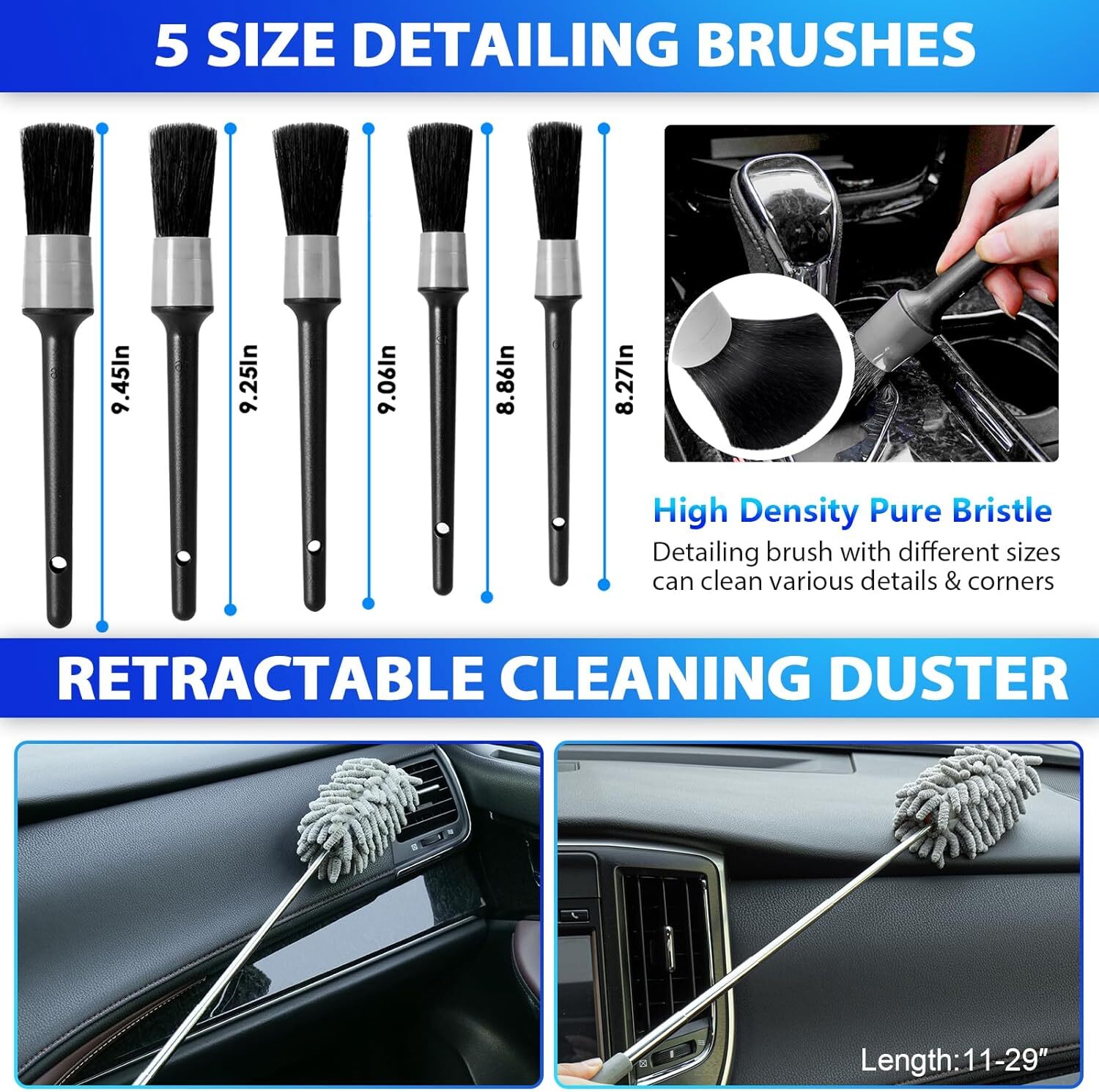 Free eBay listing template designed by dewiso.com THINKWORK Car Cleaning Kit, Car Vacuum Kit, Car Detailing Kit Interior Cleaner - High Power Vacuum with 10Pcs Brush and Storage Bag, Gray Car Interior Cleaning Kit for Men and Women FREE AND FAST SHIPPING! About this item High-Power Suction: Equipped with a robust 120W motor, this gray car vacuum cleaner delivers an impressive 8000Pa of suction power. It efficiently removes dirt, debris, pet hair, and crumbs from every corner of your car. The extended hose, brush nozzle, and long tube make it perfect for cleaning hair and dust from various surfaces, including hard-to-reach crevices and corners in both cars and homes. Additionally, the independent LED light button allows you to clean even in the dark. Car Interior Cleaning Supplies: Got a mess in your car? No worries! Our kit covers all your needs with 5 different-sized brushes for every nook and cranny. There’s a microfiber towel tougher than your last workout, and a set of long-bristled brushes for those tricky spots. The rearview mirror wiper ensures clear visibility, while the soft-bristled detail brush cleans without scratching. The vent brush tackles those pesky air outlets, and our car cleaning gel captures dust like a pro. Basically, this kit is your car’s new best friend. Professional 31-Piece Car Cleaning Kit: Includes 1 High-Power Vacuum Cleaner (with 1 Filter Brush, 1 USB Port, 1 Extended Hose, 1 Brush Nozzle, 1 Long Tube, and 2 Washable Filters), 5 Detailing Brushes, 1 Soft Detail Brush, 2 Long-Hair Detail Brushes, 2 Microfiber Towels, 1 Windshield Brush with 4 Cleaning Pads, 1 Spray Bottle, 1 Air Vent Brush, 2 Cleaning Gels, 1 Retractable Cleaning Duster, 4 Waxing Sponges, 1 Mirror Wiper, and 1 Exquisite Large Storage Bag. Car Cleaning Kit with Vacuum for Convenient Storage: This car cleaning kit features a stylish, multi-functional gray design that combines aesthetics with high performance. Each accessory is carefully color-matched and neatly organized in a chic, padded storage bag. This thoughtfully designed bag makes storing and carrying all cleaning tools and accessories a breeze. Reliable and elegant, this kit is an excellent choice for meeting all your car cleaning needs. Perfect Gift Choice: This gray car vacuum cleaner is both stylish and functional, making it a great gift for car enthusiasts. It includes a complete set of car cleaning tools and comes with an Oxford bag for easy storage. Ideal for special occasions like Valentine’s Day, Christmas, birthdays, and graduations, this kit is a thoughtful gift. Enjoy a worry-free shopping experience with our professional customer service team. Product We offer a 30-Day Return Policy on items which you are not completely satisfied with. You have the option for a full-refund or an exchange of the item. No returns are available on items shipped outside of the US . Shipping We offer Free Shipping to the US and ship within 2 business days of payment, usually sooner. We use UPS express shipping. That's why your products are usually delivered within 3 days . Contact We try our very best to make sure every customer is completely satisfied. If there's a problem , message us! We're happy to help. 24/7 live chat available.