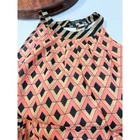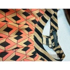 A halter neck maxi dress showcasing a striking abstract geometric pattern. This dress features a flattering halter neckline and a flowing maxi length, offering a chic and stylish silhouette. The design incorporates a dynamic mix of geometric shapes in coral and black, contrasted with bold horizontal stripes along the neckline and hem. The back of the dress reveals a tasteful cutout detail, adding a touch of modern flair. Crafted from a lightweight material, it drapes beautifully for comfortable wear pit to pit-19" hip 20 1/2 " length 37" Style: Sundress, Maxi Dress Length: Long Department: Women Sleeve Length: Sleeveless Pattern: Geometric Occasion: Casual, Travel, Party/Cocktail Material: 100% Polyester, Polyester Blend, Silk Blend, Rayon Fabric Type: Woven Theme: Beach, Bohemian, Summer, Vacation Neckline: Halter Season: Summer, Spring Keywords: THML dress, Anthropologie dress, halter neck dress, maxi dress, geometric print dress, abstract print dress, striped dress, women's dress, summer dress, beach dress, vacation dress, designer dress, lightweight dress, flowy dress, size L dress