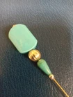 Three Very Fancy Art Deco styled Hat Pins. In the Victorian/Edwardian styled Hat Pins. Each pin is a long 8". Gold toned metal trim. Safety end caps included. Hat Pins by Joanne. Thanks for looking and check back often.