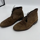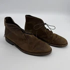 The THURSDAY Boot Company presents the Everyday Scout Distressed Brown Ankle Chukka Suede Boots in size 10 for men. Handmade in Mexico, these lace-up boots feature an almond toe shape and a comfortable leather lining. The boots are designed with a suede upper, leather insole, and a durable suede outsole, making them suitable for winter, fall, and spring seasons. The classic brown color and logo accents add a touch of style to these versatile boots, perfect for casual, business, or party occasions. New laces. Needs new liner.