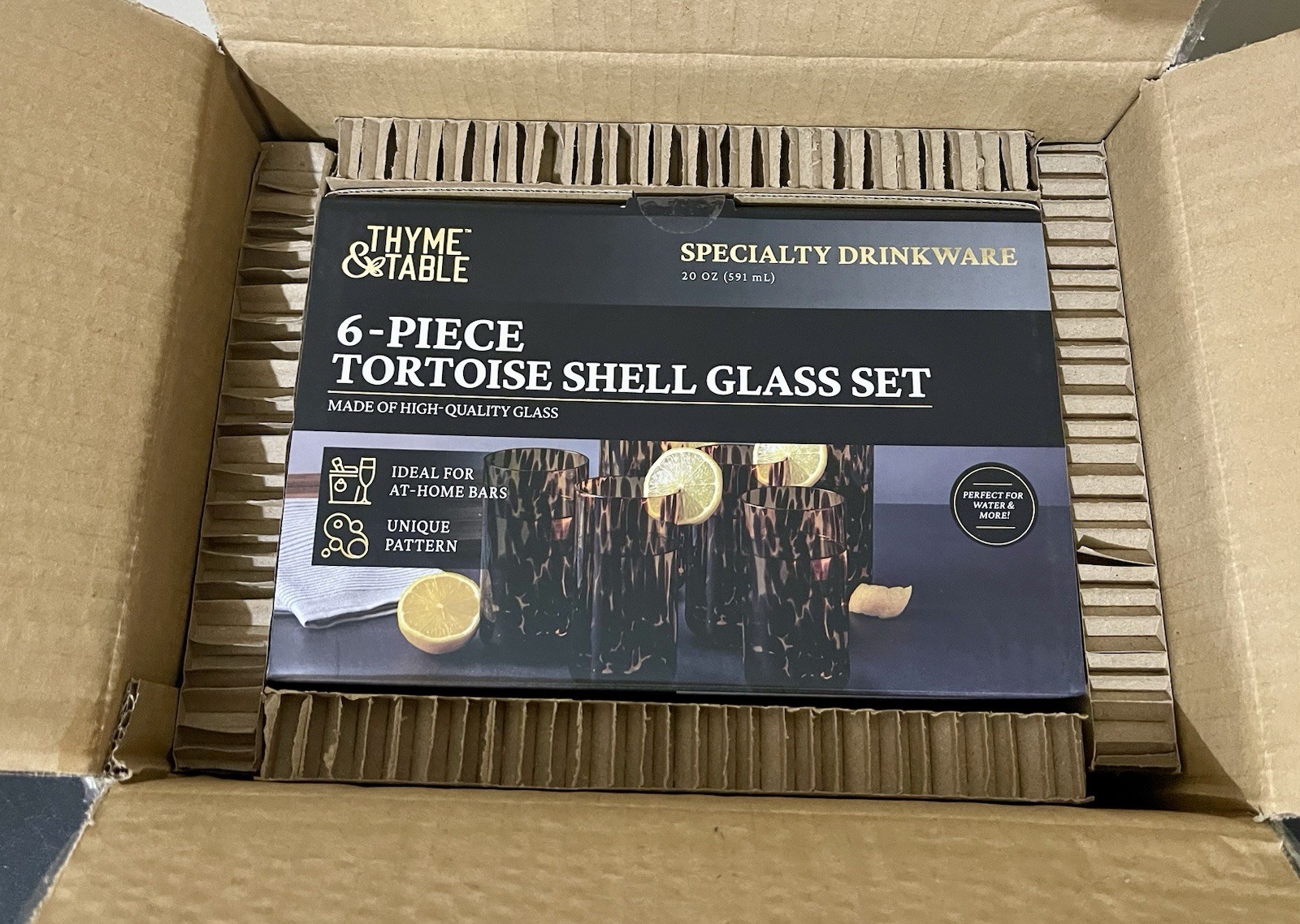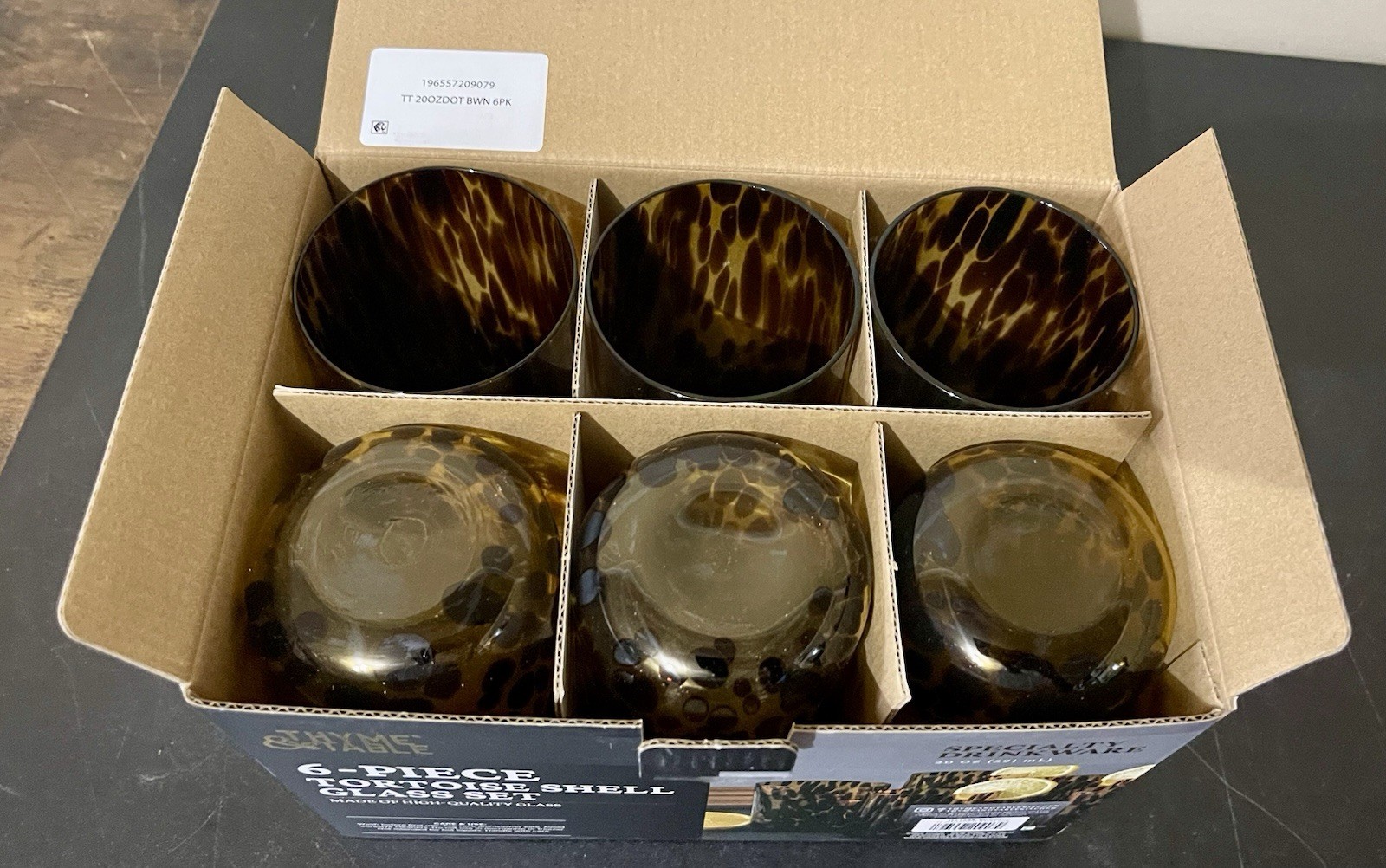 THYME & TABLE-Glass Set-NEW-6-Piece Tortoise Shell Glass Set-20 OZ Glasses This Item is NEW