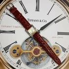 TIFFANY & CO. 14K YELLOW GOLD TANK WATCH MOVEMENT by "Watch IMP Corp" Circa 50's - 60's Crocodile Leather Band 8" 14K Polished Yellow Gold Case, Very Good Condition, Back Casing Has Light Wear Consistent With Age - See Pics Unique Face In Gold-Color Quadrants - Signed Tiffany & Co. & Swiss Baton-Style Markers On Dial With "Gold Crown" Indents For 12, 3, 6, and 9 - Stylized Gold Hands Crystal In Good Condition With Light Wear Consistent With Age - Slight Scratch Between "9" and Hands - See Pics (barely discernable) Movement Signed "Watch IMP Corp", "Unadjusted", "Seventeen" (17 Jewels), "Swiss" Keeping Good Time Band Total Length 8+" - First Hole Appears at 7 1/2" Imprinted "Genuine Crocodile Leather 18" - "Tiffany & Co." & "Austria" on Band Reverse - Buckle Not Tested But Bright Polish Will Come In Tiffany & Co. Blue Gift Box ~~~~~~~~~~~~~~~~~~~~~ Sleek and Elegant This Watch Will Look Sophisticated On a Woman or Man Tiffany & Co. 14K Gold Watch 8" Crocodile Leather Band Fits Approximately 7 1/2" Wrist ~~~~~~~~~~~~ This 14K Gold Tiffany & Co. Qualifies For Ebay's Complimentary "Authentication" Program As Well As Buyer's Protection Plan ~~~~~~~~~~~~ HISTORIC At the beginning of the 20th century, great advances were made in the miniaturization of watch movements. This allowed Tiffany & Co. to design highly successful and sought-after wristwatches for ladies, especially in the Art Deco years (1920s and 1930s). The Watch IMP Corp, along with Patek Philippe, Baume & Mercier, Movado, and Omega Watch Companies were among those that produced fine movements for the elite Tiffany & Co. watches of the day. ~~~~~~~~~~~~ PICTURES ARE PART OF THE DESCRIPTION PLEASE ASK QUESTIONS BEFORE BIDDING Shipping to Continental U.S. Only NO P.O. BOXES. Thank you.