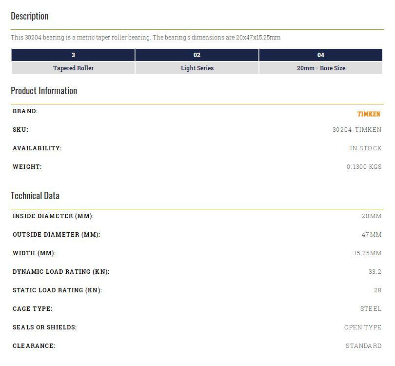 $ 6.77Timken 30208 Taper Roller Bearing 40x80x19.75mm Single Piece New