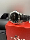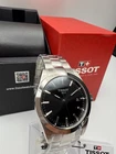 FREE SHIPPING FROM MIAMI DELIVERY TIME 1-4 BUSINESS DAYS Product Details General Box Type Original Box Case Case Diameter 40 mm Case Thickness 8.52 mm Case Material Stainless Steel Case Shape Round Case Back Solid Band Band Material Stainless Steel Band Type Bracelet Band Color Silver-tone Band Width 21 mm Clasp Butterfly with a Push Button Release Dial Dial Color Black Type Analog Crystal Scratch Resistant Sapphire Hands Luminous Silver-tone Dial Markers Index Second Markers Minute Markers around the outer rim Luminiscence Hands and Markers Bezel Fixed Bezel Color Silver-tone Bezel Material Stainless Steel Crown Pull / Push Information Brand Tissot Collection Name Gentleman Gender Mens Model T127.410.11.051.00 Watch Label Swiss Made Movement Quartz Engine ETA Caliber F06.115 Features Water Resistance 100 meters / 330 feet Calendar Date display at the 3 o'clock position Functions Date, Hour, Minute, Second Watch Features Analog, Stainless Steel Shipping & Returns Shipping fast with full tracking 30-day return policy International shipping available