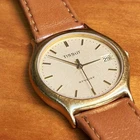 TISSOT C250 Swiss Made Mens Gold Round Quartz Watch 30mm Brown Leather Strap