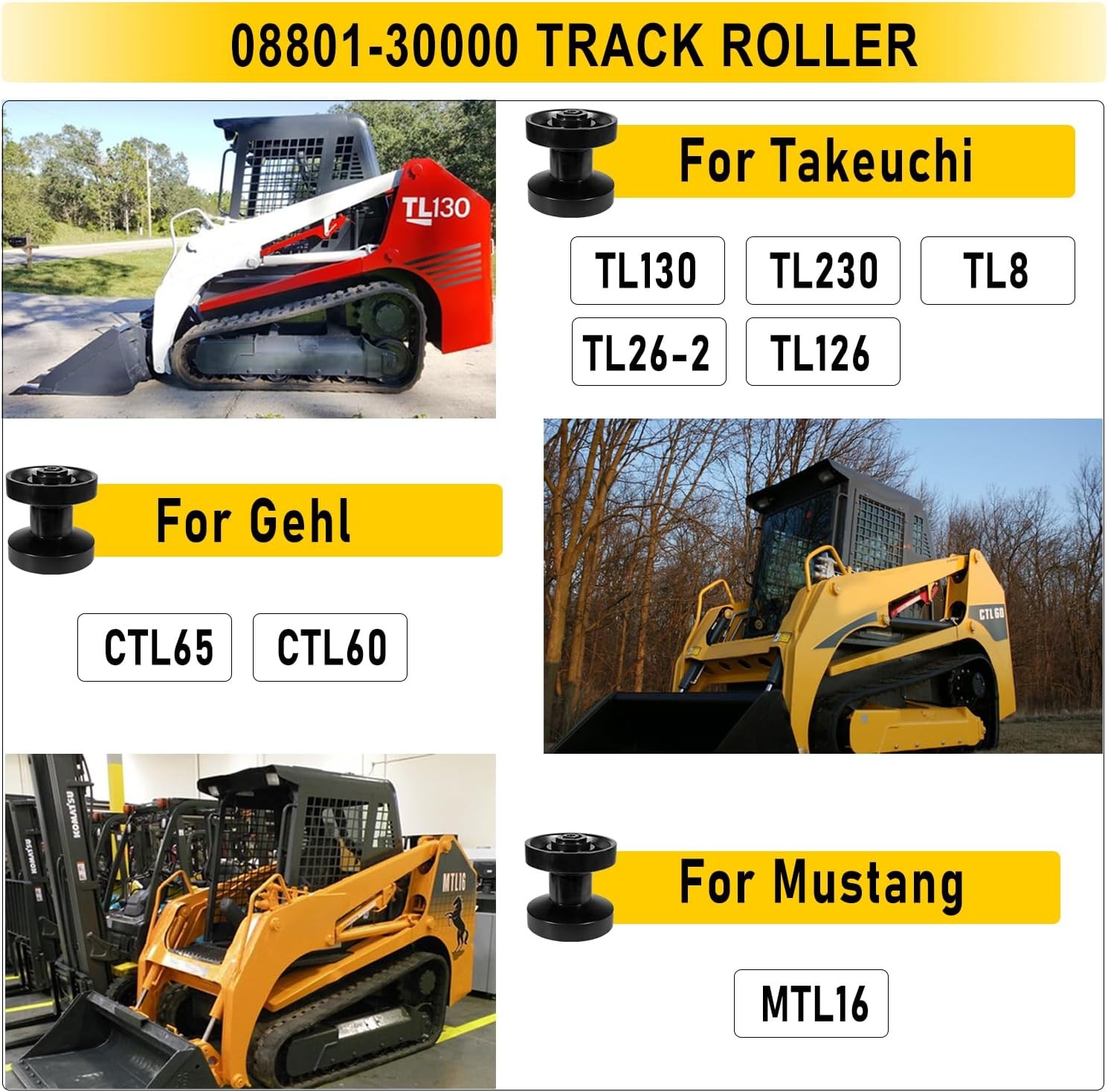 TL130 Track Roller Bottom Roller for Takeuchi TL130 ,Gehl CTL65 ,Mustang MTL16 TL130 Track Roller Bottom Roller for Takeuchi TL130 TL230 TL8 TL126 TL26-2 Skid Steer Loader, Fits Gehl CTL65 CTL60, Fits Mustang MTL16, Replace# 08801-30000, 180775 APPLICATION -- Compatible with Takeuchi TL130, TL230, TL8, TL26-2, Takeuchi TL126, fits for Gehl CTL65, CTL60, And for Mustang MTL16 Skid Steer Loader. DIRECT REPLACEMENT -- Replaces Takeuchi #: 08801-30000, 08801-33100, 08801-30100, Replaces Gehl #: 180775, Replaces Mustang #: 180775 QUALITY -- Mamufactured from premium hardened steel. The bearings used are completely sealed to protect the bottom rollers from foreign debris for worry free operation! GUARANTEED TO FIT -- Manufactured from heavy duty steel, using top of the line machining and measuring equipment to ensure each part is manufactured to OEM quality standards and specifications. Improved its strength, durability and ensure high performance. EASY INSTALLATION -- Direct replacement. Simply reuse the original factory bolts for easy installation. These track rollers are installed at the bottom of the undercarriage. (4 bottom rollers per side on the Takeuchi TL130.) PACKAGE INCLUDED -- TL130 Track Roller Bottom Roller Payment Delivery details Terms of sales Contact us Payment Orders will be ship out within 1-3 business days after payment has cleared. Delivery details Orders from Saturdays, Sundays or holidays will process on next business day and will be ship within 24 hours. Some shipments could take longer subject to your local customs authorities. We only ship to confirmed ebay addresses. Your ebay address MUST MATCH your Shipping address Terms of sales We accept 60 days return guarantee for all Items If you are unsatisfied with something you bought from us, you may send it back within 60 days of receipt, and we shall be happy to exchange or refund. Contact us If you have any question, please email contact me, we can solve all the problem. Brand Unbranded Type Track Roller Bottom Roller Model TL130 Material Steel Compatible Equipment Make for Takeuchi,Gehl ,Mustang Compatible Equipment Type Track Roller Bottom Roller Country/Region of Manufacture United States Vintage Part Yes Performance Part Yes Universal Fitment No Manufacturer Warranty 1 Year Interchange Part Number 08801-30000, 08801-33100, 08801-30100 Manufacturer Part Number 180775