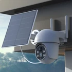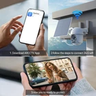 TMEZON Solar Security Camera Outdoor Battery, 2K Wireless PTZ WLAN IP Camera Outdoor, Solar Camera with Color Night Vision, PIR Motion Detector,Siren/White Light Alarm, 2-Way Audio,2.4GHz WiFi 【100% wireless and surveillance camera solar】 The wlan surveillance camera outside has no complicated wiring and is easy and flexible to install. This outdoor wireless solar surveillance camera is equipped with high capacity rechargeable batteries and is continuously powered by the supplied solar panel (3 m cable), which guarantees an eternal power supply. 【PIR motion detection and intelligent alarm】 With an artificial intelligence algorithm, solar surveillance camera greatly improves human detection to reduce false alarms. When the alarm is triggered, it emits a siren sound to warn suspicious persons (siren/voice). Don't worry about unexpected visitors at night in the dark. Built-in alarm photodiode provides instant alarm notification (in 0.2 s.2 s) 【Color night vision, 360° coverage】 With 1-W LED flood light, the solar camera has night vision up to 15m and color night vision 10m, which provides color images day and night. The 355° horizontal rotation and 120° vertical rotation are fully controlled via the mobile app, while the 130° solar-powered wide-angle camera guarantees panoramic shots of your home, shop, garage and every corner of your home. 【Two-way audio and sharing device】 Outdoor wireless camera surveillance features a built-in speaker and microphone to support real-time communication. And you can share the device with your families so they can access the outdoor surveillance camera anytime, anywhere and watch the real-time video. Simply scan the QR to easily share the camera (compatible with Android/iOS/tablets). 【SD card and cloud storage】 The solar Wi-Fi surveillance camera can store videos on a micro SD card (max 128 GB, NOT INCLUDED) or in the cloud service (free 7-day trial version). Records are automatically overwritten when they are full. Only 2.4GHz Wi-Fi is supported, better penetration and longer Wi-Fi range for the wireless tmezon Wi-Fi security camera for outdoor use.