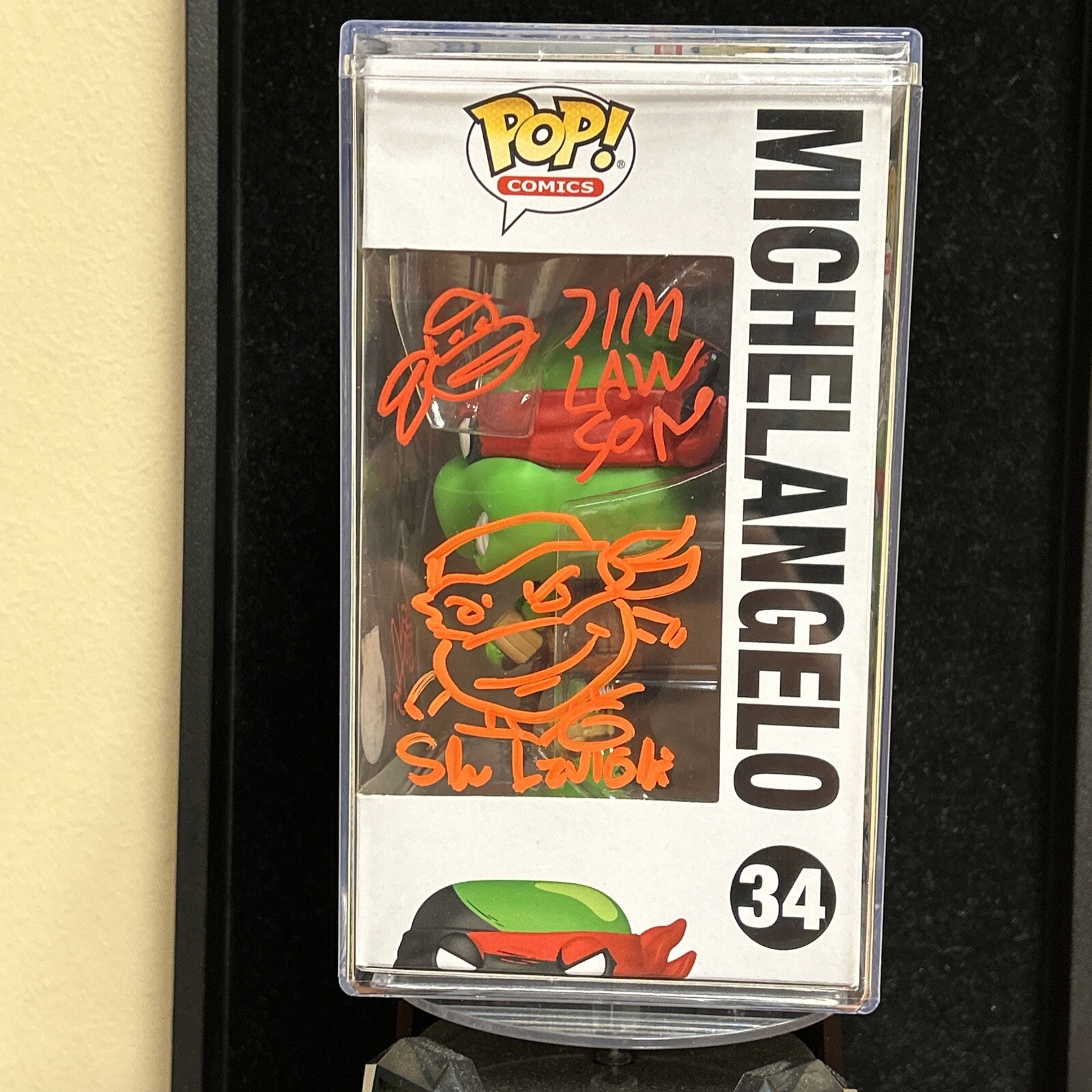This product is a Funko Pop! vinyl figure of Michelangelo from the Teenage Mutant Ninja Turtles franchise. It is autographed by Kevin Eastman, Jim Lawson, Ben Bishop, and Steve Lavigne. The figure is part of the Pop! product line and is an exclusive item from PX previews! This item was hand signed by All four artists at the Portsmouth NH Ninja turtles Mini Convention on Saturday April 27th 2024 held at Cisco brewery. This item is from my personal collection and was professionally handled to ensure pristine quality, and is contained in a Funko Pop! Brand hard plastic shell case! As always this item will be properly and professionally shipped to ensure a smooth and worry free shipping process! Thank you for looking ! ๐๐ข๐ฅ๐ค (please review photos for condition before purchase, returns are not accepted, badge in photos not included, only shown to display convention information of where the signatures took place and were obtained)
