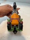 Has scratches, mostly on the shell of his belly. Good condition over. Transforms with no issues. This action figure is a must-have for any Teenage Mutant Ninja Turtles fan. The TMNT Teenage Mutant Ninja Turtles Mutations Twist N Mutate Leonardo AT3 Vehicle is an original, licensed reproduction from Playmates Toys. This 6-inch plastic figure features Leonardo, one of the four famous ninja turtles, in a transforming motorbike vehicle. The figure is based on the popular TV show and movie franchise, and is perfect for collectors and kids alike. With its multicolor design and intricate details, this action figure is sure to provide hours of imaginative play. Don't miss out on the chance to add this unique piece to your collection!