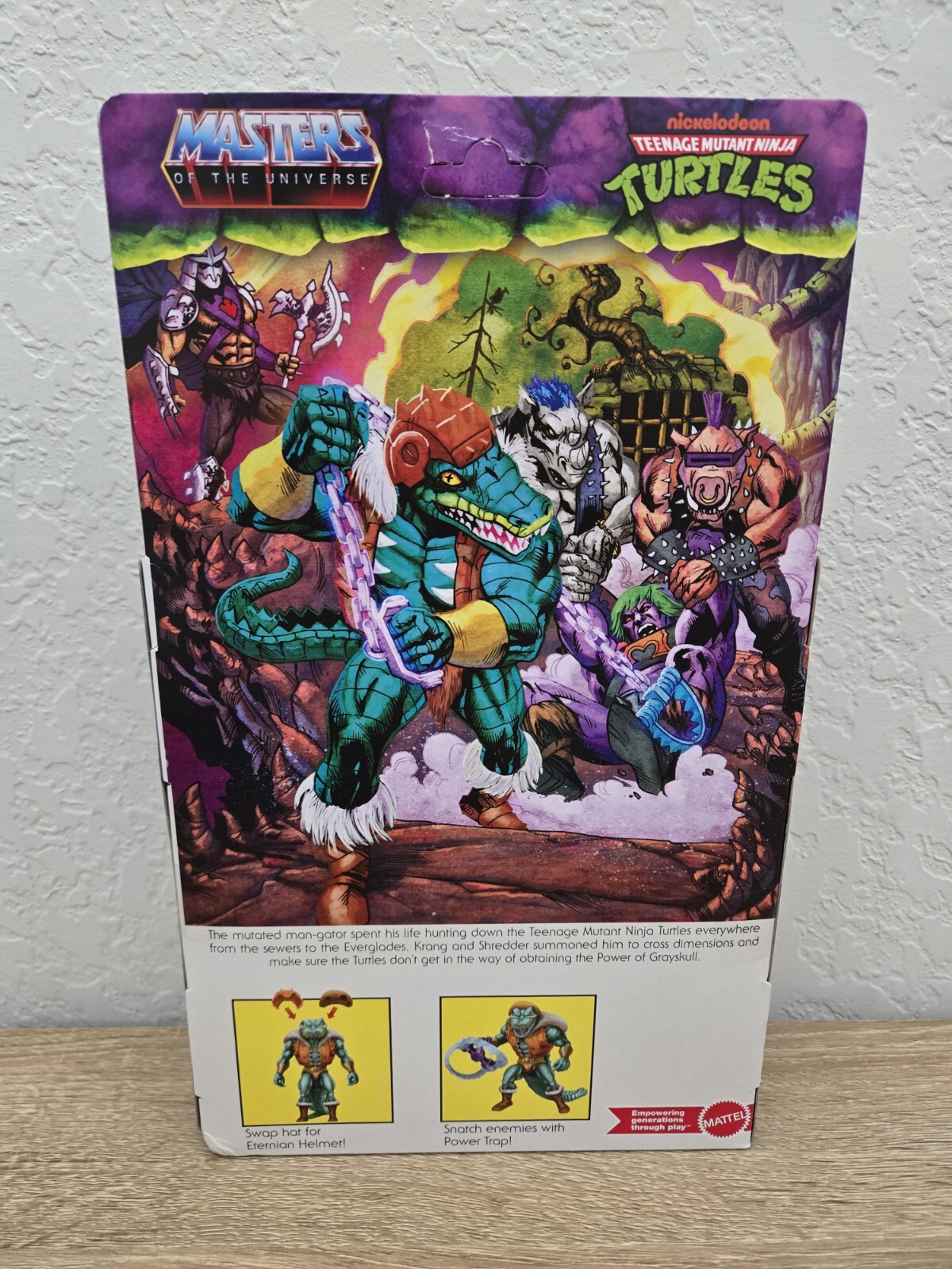 *Free shipping with USPS Ground Advantage. Ships ASAP from a smoke-free home. Packaged with bubblewrap and boxed for protection.* Are you a fan of TMNT or MOTU? This product is a TMNT Turtles of Grayskull action figure set featuring 2-Bobsteady and Leatherhead characters from the Teenage Mutant Ninja Turtles franchise. Manufactured by Mattel in 2024, the figures are made of plastic and stand 6 inches tall. They come with parts to complete your Metal-Boto figure (parts 4 of 4 only), weapons, and accessories. The set is part of the Turtles of Grayskull series and is an exclusive from Target and Walmart, boxed item with adjustable features.
