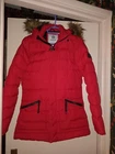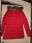 Very good condition doesn't have a belt but looks better without the hood zips away and the faux fur can be buttoned off and on full zip and buttons up the front with zip up pockets pit to pit across the chest is 20 inches any questions please ask and please look at my other items I do combine postage dispatched with royal mail 2nd class