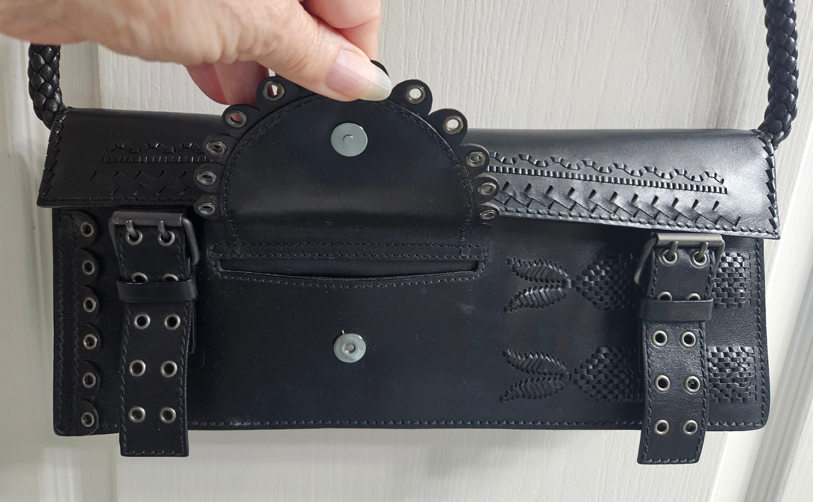 Up for auction is a TOM FORD YVES SAINT LAURENT BLACK LEATHER CLUTCH SHOULDER BAG, model F/W2001. It was only used a couple of times & is in mint condition. Others have this listed for well over $1,000. The measurements are listed above. It comes from a smoke free home. Features include: Braided leather shoulder strap Grommet embellishments Double buckle magnetic closures Front flap pocket with magnetic closure Leather embroidered design on front Inside slip pocket Logo stamped on back Please feel free to email me any questions regarding this auction prior to the end of the auction . Buyer to pay shipping costs. I will refund your money ONLY if I have misrepresented the item in my description. I try to give a very honest and detailed description. Please give me the courtesy of sending payment within 3 days of the close of this auction. Thank you for your cooperation. Good luck and thanks for viewing my auction. Please take a moment to view the other great items I have listed.
