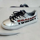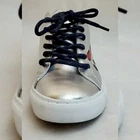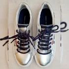 TOMMY HILFIGER AUTHENTIC LONI METALLIC LOGO SNEAKERS WOMEN'S SIZE 8 NEW WITH TAGS. Metallic sneakers flaunt logo lettering in emblematic colors.