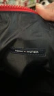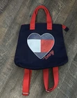 The bag has a zipper closure and a sturdy Red Canvas handles The exterior is made of durable canvas while the interior is lined with soft blue polyester. This small-sized backpack features adjustable straps