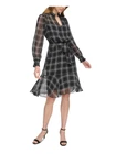 $ 10.56AIDAN MATTOX Dress Size 4 Metallic Black Gold Long Sleeve V-Neck Mini NWT $220