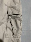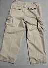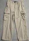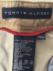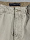 These are TOMMY HILFIGER men's khaki cargo pants in size 34x30. Made of 100% cotton, these pants feature a relaxed fit with a straight leg style and a flat front. They have cargo and slash pockets for convenience. The pants are suitable for various occasions like travel, casual outings, workwear, or business settings. The design includes embroidered accents and the TOMMY HILFIGER logo, giving them a preppy style.