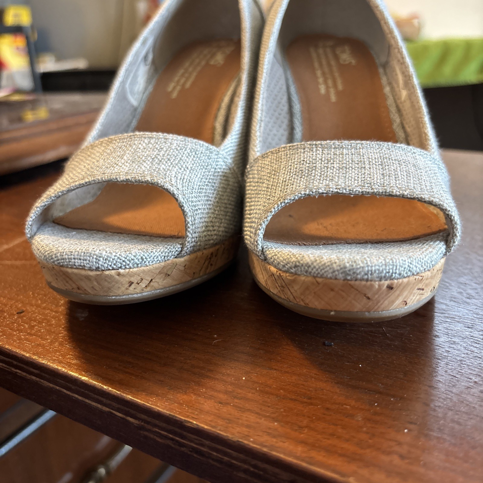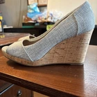 The TOMS Stella Light Grey Fabric Sandal is a stylish and comfortable wedge heel shoe for women in size 7. This peep toe sandal features a slip-on closure and a 3.25-inch wedge heel, making it perfect for various occasions like travel, casual outings, or business meetings. The solid gray color and fabric lining add a touch of elegance to the design, while the cork heel provides added comfort and support. With its standard shoe width and cotton blend upper material, these TOMS sandals are a versatile and chic choice for any fashion-forward woman.