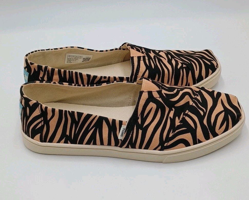 TOMS Women's Tiger Print Slip On Beige Black Casual Shoes Size 7 Great Condition. Condition is Pre-owned - Excellent. Shipped with USPS Ground Advantage.