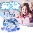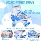 This 4-size adjustable luminous roller skate, equipped with flashing and LED luminous wheels, can shine both day and night. The unique shoe surface design, bright colors, allows children to exercise their bodies while playing and enjoy the fun of sports. Features: 4 sizes adjustable, suitable for children of different ages. Equipped with flashing and LED luminous wheels, can shine both day and night. Unique shoe surface design, bright colors, allows children to exercise their bodies while playing. Suitable for girls, boys, and children, the perfect gift for children. Exercise children's bodies, improve their balance and coordination. Specifications: Size: S / M / L Color: Purple / Pink / Blue Package Size: 41cm x 11cm x 30cm / 16.1in x 4.3in x 11.8in Package Weight: 2600g / 91.7oz Package list: 1 x Luminous Roller Skate 1 x Instruction Manual 1 x Screw Accessories