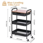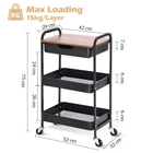 WOODEN BOARD & MULTI-PURPOSE DRAWER: The unique top board is made by durable MDF wood. While blending into the surrounding, it can help keep your items clean and stable. The sturdy ABS drawer can store a variety of household items that are frequently used at the under-desk, kid’s room, nursery, craft room, or dorm room. STURDY CONSTRUCTION: This serving cart is well constructed with high quality material, structured with heavy sturdy metal frame and sleek powder coating which provides strong protection for storage and sturdy enough to hold up to 132lbs. MOVEABLE & HEAVY DUTY: There are 4 heavy duty and 360° rotatable casters, 2 lockable wheels help you move or stop the cart anywhere needed. You can roll it like a rolling desk with little effort to any direction even in narrow space easily. LARGE CAPACITY STORAGE & EASY ASSEMBLE: The 2 large baskets and the drawer provide enough storage space for your daily life, optimize the space utilization, and make the messy room tidy. This 3 tier utility cart with tabletop comes with the assembly tool, easy to put it together within 10 mins. SIZE & SERVICE: The whole size is about 18.5 L x 11.8 W x 30.3 H inches. The large basket is 16.3 L x 12 W x 2.5 H inches, small basket is 15.9 L X 11.8 W X 2.5 H inches. TOOLF provides thoughtful service for all problems, warranty guarantee is certainly assured.