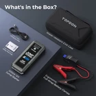 TOPDON JS2000 Jump Starter Lithium-ion Car Battery Booster Power 2000Amp LED Car Battery Jump Starter, TOPDON 2000A Peak Battery Jump Starter for Up to 8L Gas/6L Diesel Engines, 12V Portable Battery B00STER Jump Starter Pack with Jumper Cables and EVA Protection Case Brand TOPDON Product Dimensions 7"D x 11"W x 4"H Amperage 2000 Amps Peak Output Current 2000 Amps Manufacturer TOPDON About this item Massive 2000 Peak Amps ➤ The JumpSurge 2000 car jump starter can deliver 2000 peak amps to restart 12V batteries (8.0L gasoline and 6.0L diesel engines) in 3 seconds. It supports quick and safe jumpstarts for cars, trucks, motorcycles, yachts, lawnmowers, ATVs, SUVs, snowmobiles, and even boats - up to 40 times on a single charge. Whether in extremely cold or extremely hot desert climates, all 12V vehicles can start safely. Never be without power on the road! Super Safe to Use ➤ Alongside a UL2734 certification,this car battery jump starter boasts 10 built-in smart-protections against reverse polarities, short circuits, overcurrents, and more. These well-rounded safety features protect the user, the car, and the jump starter tool from any damage while operating. It can work in temperatures between 14°F ~104°F thanks to its revolutionary Stop Spark sensor. The LED indicator will blink to warn users when the product is being misused to prevent damage. All-Round And Durable Protection ➤Comes with a high-quality, crush-resistant, anti-shock carrying case made of hard EVA, providing all-round and durable protection. Its zipper design offers convenient opening and closing. By purchasing this too, you get the jump starter ; heavy-duty clamps; USB-C cable; user manual; EVA carrying case; dedicated 24/7 customer care service; 30 day return & replacement policy; 1 year quality assurance; and free for life technical assistance.(Adapter not included.) One-Click to B00ST Dead Batteries ➤ The biggest breakthrough of TOPDON’s JS2000 is the B00ST Mode, capable of restoring a flat battery and starting the car normally. **Always ensure the clamps are properly connected before pressing the “B00ST” button on this car jump B00STER. If the connection is proper, the light will turn solid green, and you can start an engine with 0% of battery capacity right away. 300 Lumens LED Flashlight & Backup Power Bank ➤ The JS2000 is a 3-in-1 tool that works as a car starter, a portable power bank, and an LED flashlight. It has versatile outputs (QC 3.0, 5V/2A USB, 12V/10A DC), ideal for charging your USB devices (phone 4 times, iPad 2 times, headphones 40 times). It is capable of powering 12V in-car appliances. The built-in 300 lumens LED flashlight features 3 modes: Steady Light, SOS, and Strobe, so you are prepared to deal with unexpected emergencies at night. Product Description 16000mAh Power Bank The JS2000 Jump Starter also serves as a 16000 mAh power bank that can fully charge your smartphone, tablet, and any compatible electronic device. Works Under Extreme Temperatures Its working temperature ranges from 14℉ ~ 104℉ (-10℃ ~ 40℃), allowing you to jump-start under the most extreme weather conditions. Don’t worry about getting stranded under any circumstances with the JS2000. 12V DC OUTPUT PORT The JS2000 jump starter pack can be worked as a compact portable 16.8V/10A(max) DC power source for 12V car accessories, e.g tire inflator, car refrigerator cooler, car vacuum cleaner, and other 12V DC devices. 300 Lumens LED Flashlight The ultra-bright LED flashlight has 3 illumination modes: Steady, SOS, and Strobe, for you to easily check and work in the engine bay in the dark. The device can also help you signal for help and take care of unexpected emergencies while traveling. Safety Above Everything JS2000 car battery jump starter boasts multi built-in smart-protections against reverse polarities, short circuits, overcurrents, and more. These well-rounded safety features protect the user, the car, and the jump starter tool from any damage while operating. What's more, the cable is 8AWG and clips are well-made with strong springs. A Great Gift for Family or Friends The JumpSurge 2000 can be a great gift for family or friends, giving your loved ones the ability to be prepared for the unexpected, avoid being stranded with a dead battery, have a portable, lifesaving power supply, and an LED Flashlight for any emergency. JS1500 JS2000 JS3000 Customer Reviews 4.6 out of 5 stars 5,373 4.6 out of 5 stars 5,373 4.6 out of 5 stars 5,373 Peak Current 1500A 2000A 3000A B00ST Function ✓ ✓ ✓ Gas Engines 6.5L 8.0L 9.0L Diesel Engines 4.0L 6.0L 7.0L Input Type C QC18W:5V3A, 9V2A Type C QC18W:5V3A, 9V2A Type C PD45W:5V3A, 9V3A, 12V3A, 15V3A Output USB1 QC18W ( 5V3A, 9V2A, 12V1.5A ); USB2 (5V/2A) USB1 QC18W ( 5V3A, 9V2A, 12V1.5A ); USB2 (5V/2A) ; DC (10A Max 16.8V) Type C (5V3A, 9V3A, 12V3A, 15V3A,20V2.25A); USB1 QC18W ( 5V3A, 9V2A, 12V1.5A); USB2 (5V/2A); DC (10A Max 16.8V) Gauge of Cable 10AWG 8AWG 7AWG Product information Technical Details Brand TOPDON Product Dimensions 7"D x 11"W x 4"H Amperage 2000 Amps Peak Output Current 2000 Amps Manufacturer TOPDON Item Weight 3.3 pounds Item model number JS2000 Batteries 12 Lithium Ion batteries required. (included) Manufacturer Part Number JUMPSURGE2000 Bulb Type LED Special Features ★Model: JS2000 Jump Starter, 16000mAh★ Up to 8L Gas or 6L Diesel, ★ 300 Lumens LED Modes (Flashlight/Strobe Light/SOS Light), ★ Dual USB output(QC 3.0, 5V/2A )&DC Output (16.8V/10A max), ★30 day return & replacement policy; 1 year quality assurance; and free for life technical assistance., ★Waterproof EVA bag, Easy to Store and Carry, ★ Alongside a UL2734 certification,10 built-in smart-protections Lift Type power Payment Delivery details Terms of sales About us Contact us Payment We accept all common forms of payment such as Credit cards、Debit card、Google Pay ect. Please contact us if you need to use another method to pay. Payment should be made within 7 days after bi