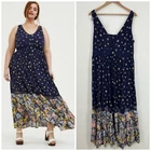Condition: Pre-owned: Good used conditions. (Please see pictures for exact conditions.) Brand: TORRID Size: 1X Style: Maxi Challis Button-Front Dress Color: Blue Floral Department: Women’s Material: 100% Rayon, Lining: 100% Polyester Chest: Approx. 19.0” Waist: Approx. 20.5” Hips: Approx. 25.0” Total Length: Approx. 54.0” Features: -Pullover closure -Challis fabric, Swiss-dot straps -Sleeveless; adjustable straps -V-neck -Button front details -Lined -Maxi length -Machine wash Please see measurements and pictures to be sure of fit. Size may change from previous wash. Chest is measured from armpit seam to armpit seam. Waist is measured from narrowest side seam to side seam. Length is measured from shoulder seam to the bottom hem. Sleeve is measured from top of sleeve to hem cuff. All measurements are approximate and measured flat across.