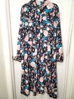 This vintage-inspired dress features a charming floral pattern, offering a classic and elegant look. The button-front design allows for effortless wear, while the long sleeves provide added coverage. Ideal for both casual and formal settings, its timeless style ensures versatility in your wardrobe. • Long sleeves for added warmth • Convenient side pockets • Elegant button-front design • Timeless floral print Length from shoulder to hem = 47 inches. CONDITIONS pre owned, no visible flaws, good conditions. see photos for more details and measurements.