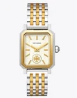 Case size: 27 x 29 mm Case thickness: 7 mm Case lug width: 16 mm Cream dial Three hands Butterfly closure Water resistance: 3 ATM Gold-tone stainless-steel case Gold-tone 7-link bracelet Tory Burch TBW1501 The Robinson 2 Tone Stainless Steel Strap Unisex Watches
