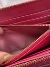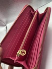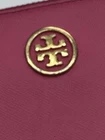 This Tory Burch women's pink zip-around wallet is a stylish and practical accessory for any woman on the go. Made of pebble leather, it features three compartments, credit card slots, a coin pouch, and a paper bill holder. The wallet is designed with a zippered closure and Tory Burch logo accents, making it both functional and fashionable. With its one-size-fits-all design, this wallet is perfect for organizing your essentials in style. Flaws - worn corners Please see photos Styling - designer, city, Barbie, pink