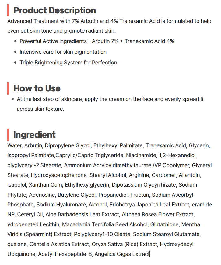 TOSOWOONG Arbutin7% Tranexamic Acid4% Cream 50ml(1.69oz) Korean skincare Brand : TOSOWOONG Volume : 50ml(1.69oz) Expiry Date : Newly Conutry of Origin : Korea Condition: 100% Brand New Note: We always supply the latest version, so the cover or packaging may differ from the images shown. < Customs and duties > -For buyers in the United States: Import duties and taxes are included in the item price or shipping cost. Items shipped to the U.S. are sent under the Delivered Duty Paid (DDP) method, which means all import-related charges are prepaid. You don?t need to pay any additional fees when your order arrives -For buyers outside the United States: Import duties, taxes, and charges are not included in the item price or shipping cost. These charges are the buyer?s responsibility. Please check with your country?s customs office to determine what these additional costs will be before bidding or buying.