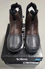 Keep your feet dry and stylish this winter season with these Totes Puffin Brown Waterproof Boots. Designed for men and made to withstand the harshest of winter elements, these boots are perfect for anyone looking for a reliable pair of snow boots. The pull-on closure ensures easy wear while the waterproof material keeps your feet comfortable and dry. These boots are brand new with tags and are available in size 8. The brown color gives it a classic look that will complement any winter outfit. Get your hands on these Totes Puffin Brown Waterproof Boots now and experience the perfect blend of style and comfort this winter season.