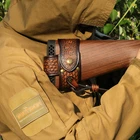 Gun Bag Gun Sling Ammo Holder Recoil Pad TOURBON Retro Leather Gun No-Drill Harness Buttstock Holder Sling Mount Holster Features Like to put a sling on your Lever Action? Hate the idea of drilling that magnificent stock to install a swivel stud? Then don’t alter it, preserve its original integrity and your investment with a Tourbon Leather Harnessed Rifle Buttstock Holder. Appropriate compliment of Western Cowboy Gun Leather to your rifle. Made of high quality top grain leather. Snap closure, easily attached to your own gun buttstock. With extra-band on the butt keeping your gun buttstock from slipping out. Have enough space to attach a rubber recoil pad onto your gun. A leather loop to carry your gun sling directly without swivels. Fine workmanship with classic design. Brand:Tourbon Size: 9*5*11.5 cm Weight: 0.1kg Color: Brown Package Contents: Genuine leather shotgun rifle buttstock holster(sling not include)