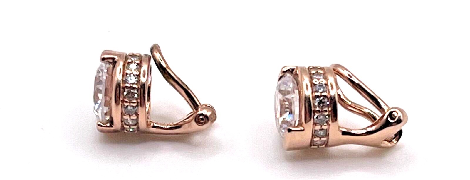 TOVA/QVC PIERCED* EARRINGS ROUND STUD BEZEL SET DIAMONIQUE EARRINGS ROSE GOLD OVER .925 STERLING SILVER S/S OVER 4.50+CARAT WEIGHT WEIGHT 6 GRAMS