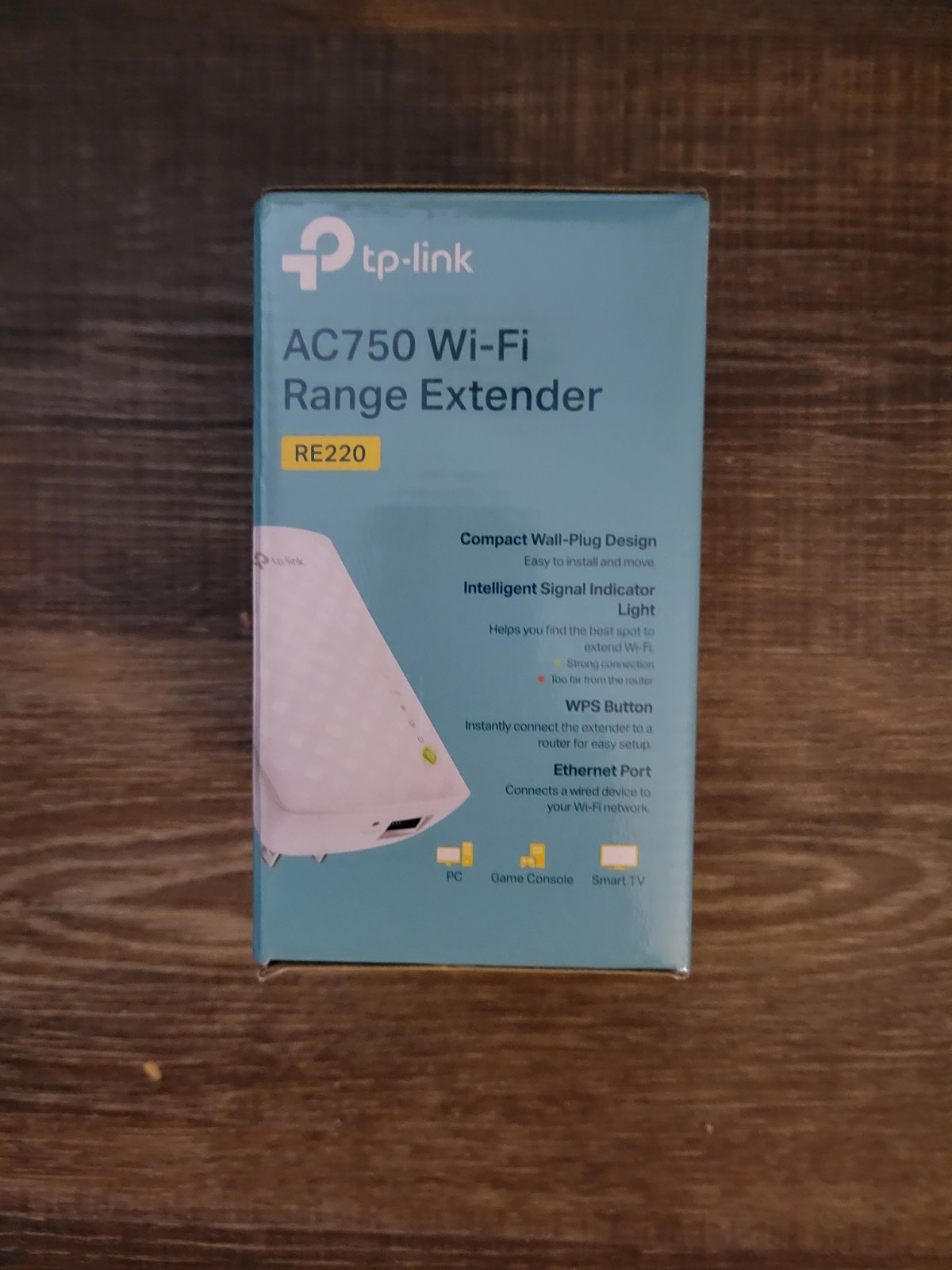 The TP-Link RE220 AC750 Dual Band Mesh Wi-Fi Range Extender Repeater Booster is a white, compact unit designed to expand the Wi-Fi coverage in your home or office. With a maximum LAN data rate of 100 Mbps and a maximum wireless data rate of 750 Mbps, it ensures a fast and reliable connection for your devices. This dual-band extender, compatible with PC and other wireless devices, features one Ethernet port for wired connections and is ideal for improving connectivity in areas with weak Wi-Fi signals. The TP-Link brand is known for its reliable networking products, making this mesh Wi-Fi range extender a trusted choice for enhancing your wireless network.