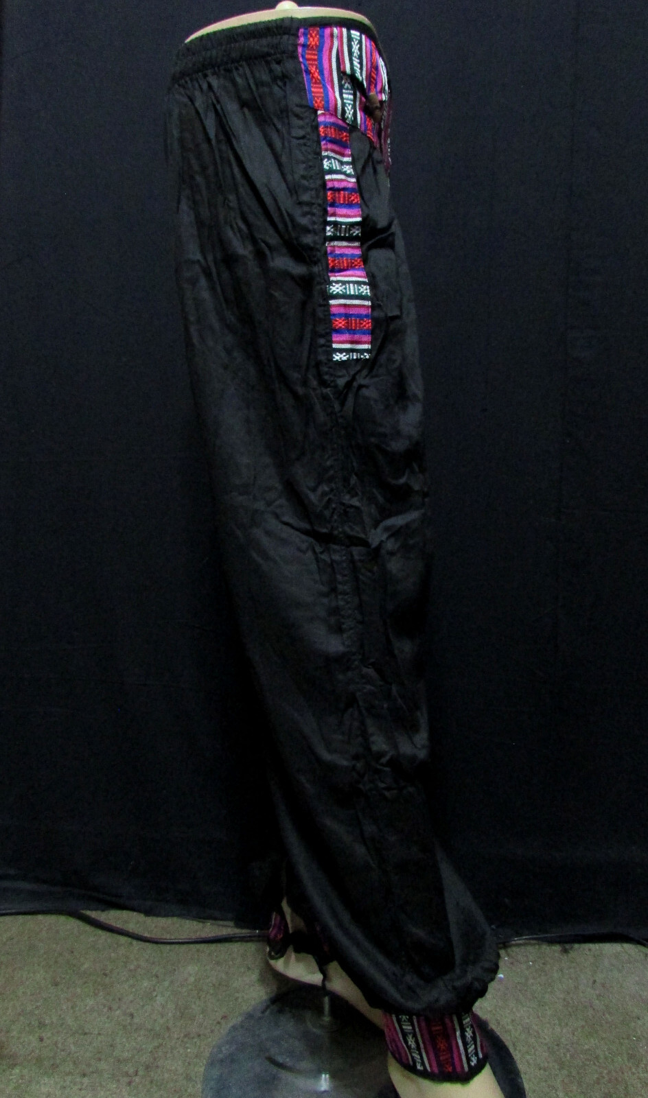 Handloom Cotton Trouser If you are looking for a summer trouser this is the perfect got to have product. This trouser has been in the market since before Hippy era and still people love to wear it just because of its quality and unique design. The slight variation in terms of fabric knitting, size, colors and odd threads are accepted as part of its making and are not considered as defect. We are into fair trade business and we are against child labor what so ever. Happy buying and hope to hear if there is any questions regarding any of our products. This a brand new (with tag) garment cotton/ rayon fabric trouser entirely handmade in Nepal. It has elasticated waistband at the back. The trouser has two inside pockets and three small coin pockets at the front. It can be used as casual wear. The tie in the ankle will make you feel comfortable as well as stylish looks. Fabric:- Cotton/Rayon Color:- Black Size :- M/Free size Condition:- New with tag The measurements are in approximately. Waist Relaxed: 26.5"/ Waist Stretched up to 36" Length: 39.5" Inseam: 28" Hip: 48" Thigh: 27" Knee: 24" Leg opening: Minimum 9.5" (Tr404/GCA) Fabric colors may slightly vary due to light effects. Hand wash Separately in cold water. Please read our policy before bidding/buying. Please note that I have done my best to give you the exact accurate color of the product as I can and have mentioned in the details. However, I'm not in the position to guarantee that every screen computer monitor will depict the actual color of the products. Please message me if you are concerned about the color or about any details before purchasing. It is worth to purchase handmade products For whole Sale contact us. Benefits of Buying Handmade Products Environmentally friendly. Items that are handmade take less energy and natural resources to produce than items made on a mass production assembly line. ... Better for the economy. Buying handmade products can also create jobs and strengthen the economy. ... Purchases you can feel good about. You will feel the human touch. The older it gets the better value you get (antique).